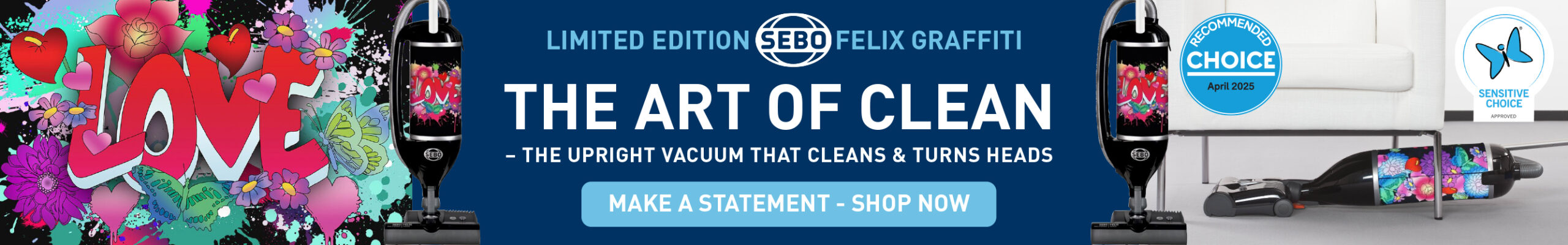 Unveiling the Exclusive SEBO Felix Graffiti premium upright vacuum cleaner—a standout vacuum cleaner for those that LOVE that clean home feeling. German-engineering, professional cleaning levels, and exclusive graffiti styling, this model redefines a healthy home environment.
