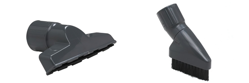 Simply detach the powerhead and use the patented integral hand hose to vacuum stairs or above the floor cleaning to reach around obstacles to remove dust and debris. The Crevice tool is located neatly and securely on the vacuum allowing quick use. Optional dusting brush shown in use above.